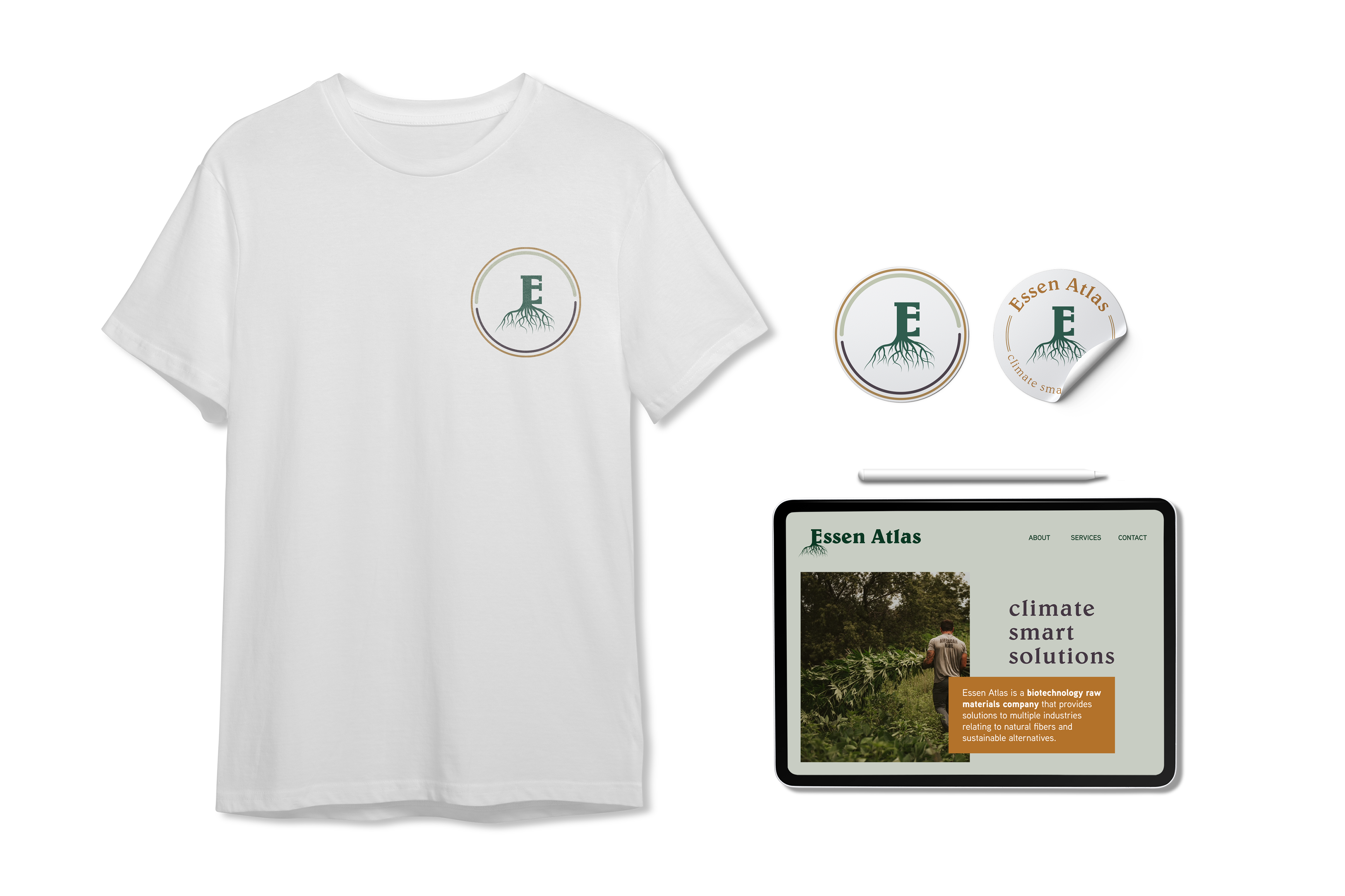 Developing the branding for Essen Atlas, a pioneering force in biotechnology raw materials based in the heart of Michigan, was a journey filled with the essence of sustainability and innovation. Rooted in the intricate processes of seed genetics, farming, and harvesting hemp fibers, Essen Atlas stands as an example of sustainable alternatives across diverse industries.